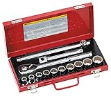 1/2インチ差込角、14点のソケットがセットになった入門向けのセットです。ISOサイズのソケットが揃っており、国内外のボルトに対応できます。工具箱の揃えはじめにちょうどよいセットだと思います。